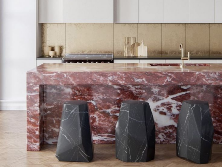 Cherry Marble’ın sıcak vişne tonları, doğal damarları ve dayanıklı yapısı; iç ve dış mekânlarda estetik ve güçlü bir etki yaratıyor. Bu mermer, zemin, duvar, mobilya ve banyodan şöminelere kadar geniş kullanım alanlarıyla tasarımlarda renk uyumu ve mekânsal bütünlük sağlıyor.