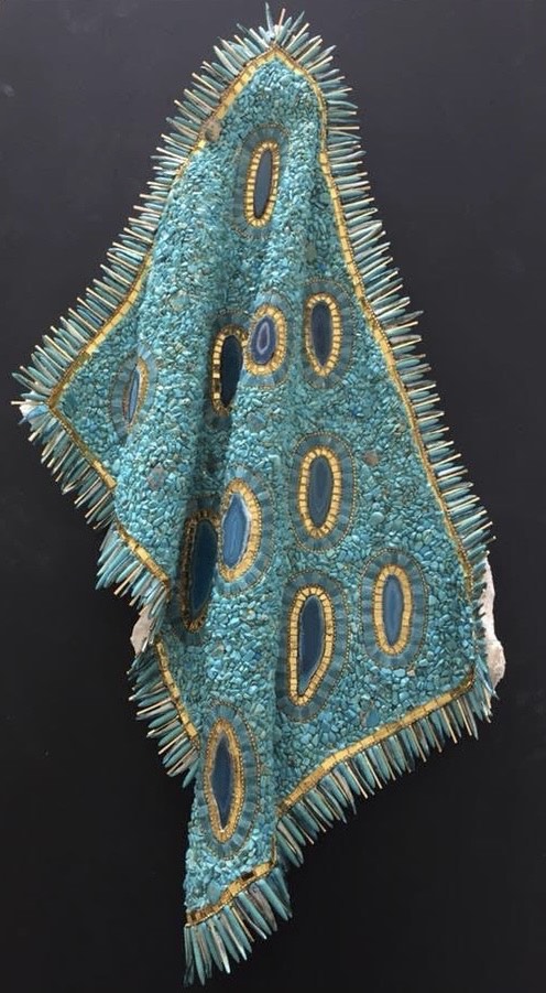 3 boyutlu paslanmaz çelik üzerine mermer, mercan, turkuaz mozaiği.