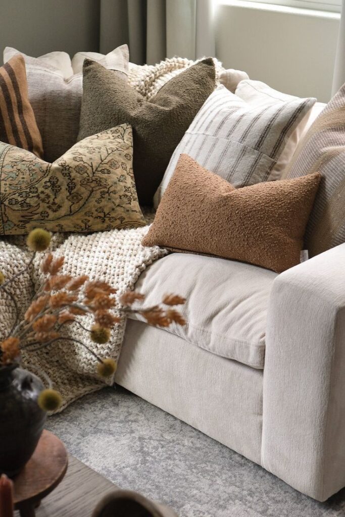 Evet, koltuklarımızın üzerine polar, örme battaniyelerimizi koyabiliriz artık. Film izlerken üzerimize alacağımız battaniyemiz ile enerjimizi bu sürece ısıtabiliriz. Laf aramızda ben de o soğuk seven kışçılardanım. Polar battaniye altında sıcak kahvemle, kokulu mumum ve tütsüm yanarken sakin bir akşam üzeri okunan kitapları çok özledim. Özellikle bu kış için sabırsızlanıyorum. Evimize dönersek, ve tabii mevsimlerin yaşam alanımızdaki yansımaları mental olarak da akışta kalmamızı sağlıyor. Doğanın bu dönüşümüne evimizde uyum sağlamış oluyor böylelikle gün içinde görsellerimiz bölünmeden sert geçişlere maruz kalmamış oluyor. Yani şunu demek istiyorum. Sehpamızın üzerindeki deniz kabuğu etkisi ile çam kozalağı etkisi farklıdır. Enerjimizi, gördüklerimizle, duyduklarımızla, hislerimizle şekillendiririz. Bu yüzden anda kalmak önemlidir ve bu yüzden evimizin renkleri, eşyalarımız, tonlarımız, dokularımız önemlidir. Dolayısı ile akışı evimize yansıtmak tasarımın doğayla uyumunu sağlar.