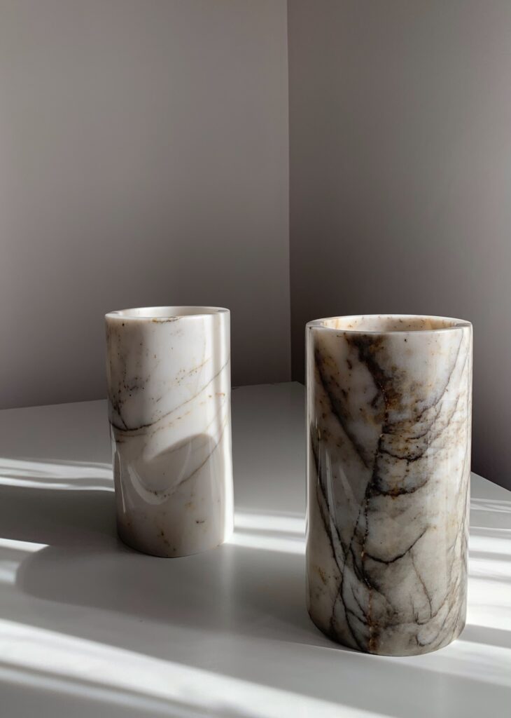 Çalıştığımız doğal taşlar arasında mermer, oniks, traverten, limestone ve çeşitli doğal oluşumlu taşlar yer alıyor. Proje bazlı özel üretim yapıldığı gibi tasarlanan ürünler üzerinde malzeme uygunluğu göz önünde bulundurarak malzeme değişikliği de yapabiliyoruz. Bu bağlam da tasarım sürecini pekiştirip, geliştiriyor.